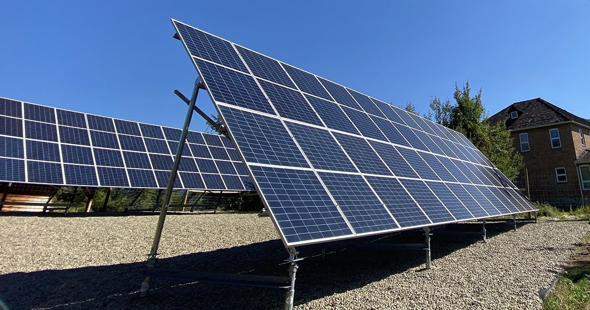 A ground mount solar installation at the Mir Centre for Peace in Castlegar has bifacial panels and the angle is adjusted throughout the year. They produce approximately 21,000 to 26,000 kWh of electricity annually and are tied to the FortisBC grid, which means that any excess power can be exported. The Mir Centre for Peace also uses geothermal heating.