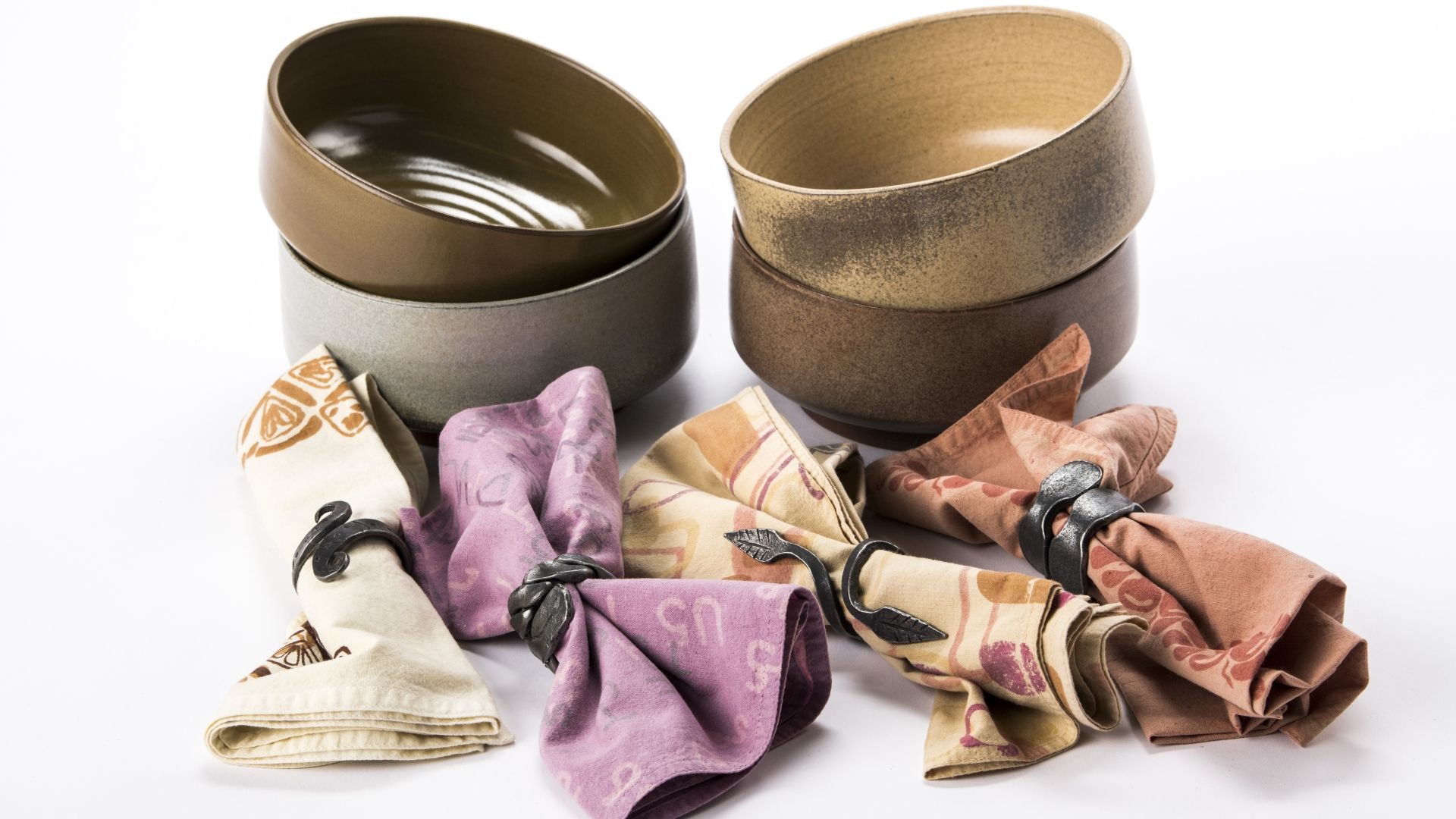 Handmade bowls, napkins and napkin holders will be available to purchase.