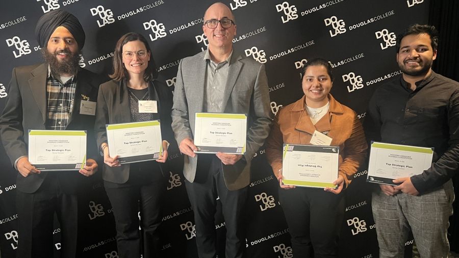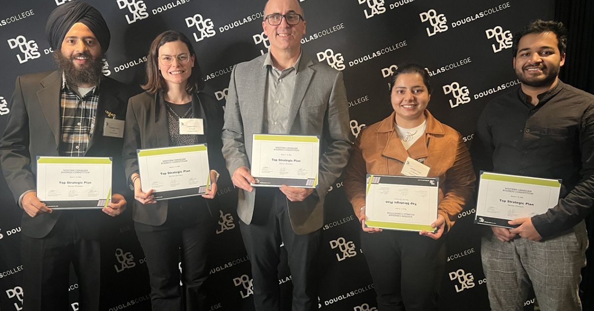 Held at New Westminster’s Douglas College in early-March, the annual Western Canadian Business Competition (WCBC) brought together schools from across British Columbia and Alberta for a three-day event that is both challenging and rewarding. In the strategic plan division, the Selkirk College team of Karminder Singh, Jaspreet Kaur, Carmen Lucia Ponce Cruz and Manmohan Nair Puthuvalputhan Udayakumaran captured first place.