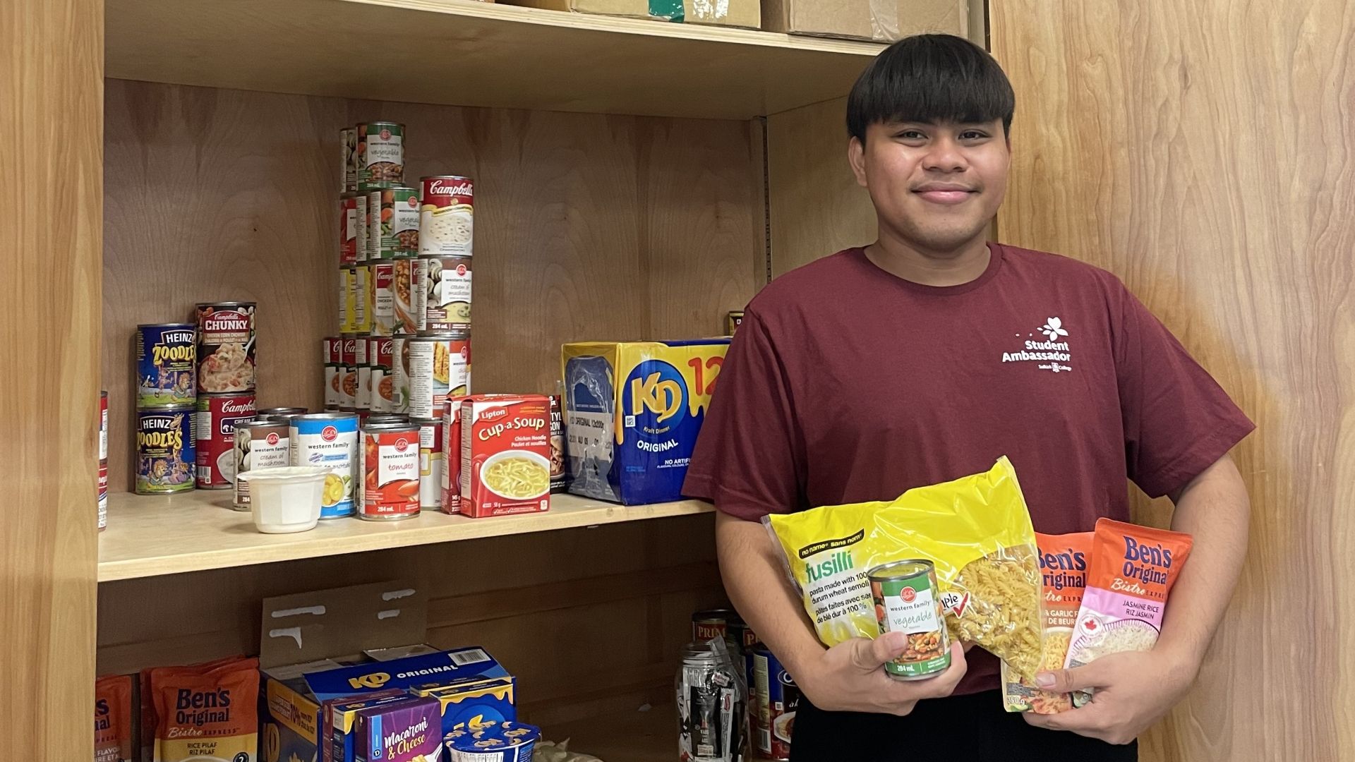 The on-campus Food Pantry is stocked with non-perishable food items.
